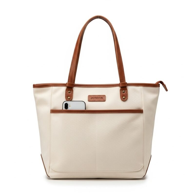 Jorevia Large Casual Tote Bag | Heavy-Duty Canvas Zipper Tote with Spacious Carryall Design for Work & Travel